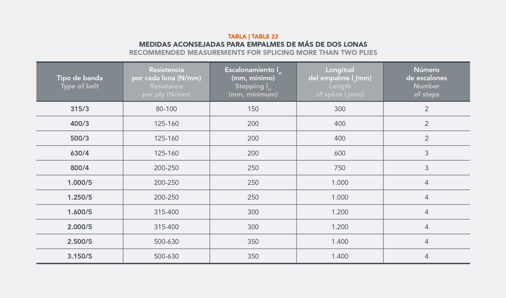 Son una solución rápida y práctica, especialmente útil cuando el espacio es limitado o la tensión de trabajo de la banda es baja. Pueden hacerse rectos o en ángulo (recomendado, normalmente a 17º), lo que mejora la resistencia y el contacto progresivo con las poleas. Existen diferentes modelos de grapas, y su instalación debe seguir siempre las instrucciones del fabricante. - Empalmes vulcanizados en frío: